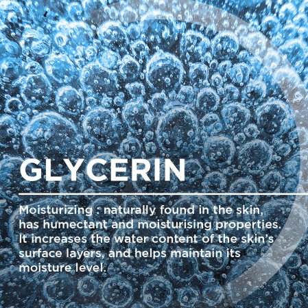 Hyaluronic acid, naturally present in the skin, forms a non-occlusive moisturizing film. It keeps water on the surface of the skin and therefore acts as a real reservoir.